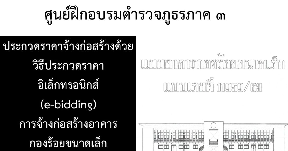 เอกสารประกวดราคาจ้างก่อสร้างด้วยวิธีประกวดราคาอิเล็กทรอนิกส์ (e-bidding) การจ้างก่อสร้างอาคารกองร้อยขนาดเล็ก ศูนย์ฝึกอบรมตำรวจภูธรภาค ๓ 22 มกราคม 2026 โดย admtrainp3 / ข่าวจัดซื้อจัดจ้าง,ข่าวประชาสัมพันธ์,ข่าวประชาสัมพันธ์,ข่าวฝากประชาสัมพันธ์,ข่าวจัดซื้อจัดจ้าง,งานการเงินและพัสดุ,ข่าวจัดซื้อจัดจ้าง,งานงบประมาณแผนงาน,ประกาศ ประกาศประกวดราคาก่อสร้างกองร้อยขนาดเล็ก